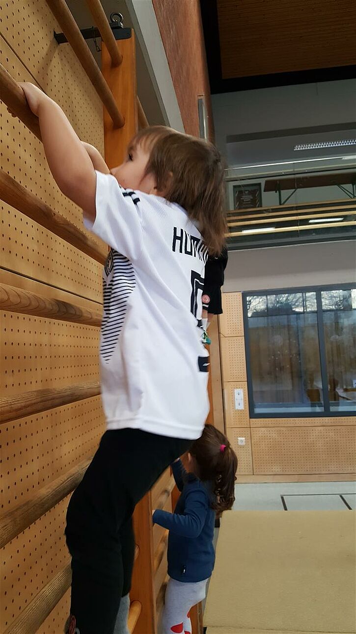 Ein weiteres Angebot ist das Turnen in der Halle. Die Kinder lieben diese willkommene Abwechslung sehr!