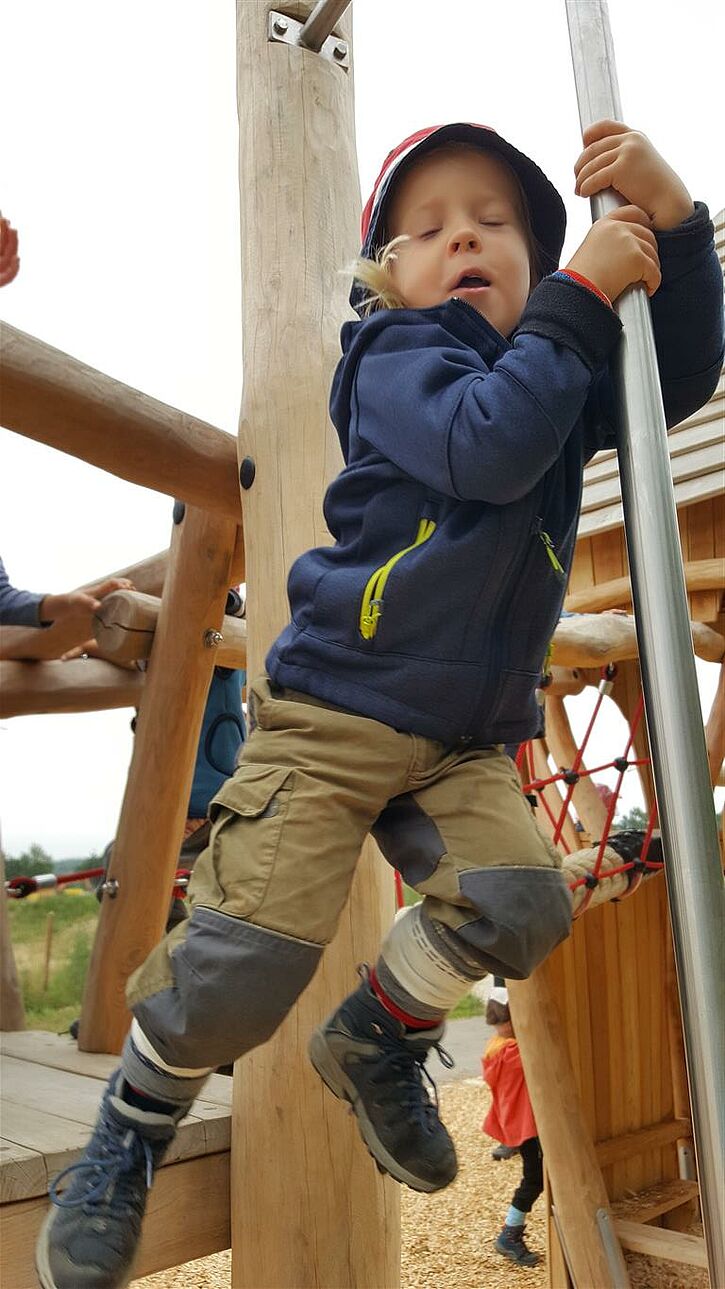 Das unebene Gelände mit seinen wechselnden Bedingungen (nass, matschig, rutschig, trocken ...) schult die Konzentration, Koordination und das Gleichgewicht.